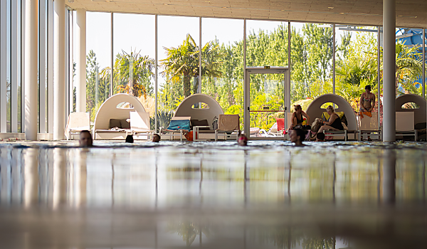 - 1800 m² vodní plochy s venkovními a vnitřními termálními bazény, se dvěma tobogány ode dne příjezdu!