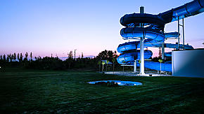 Small slide: narrower than the first slide but the same length, to be descended freestyle, lying on your back, with a final plunge into the warm water of its dedicated pool.