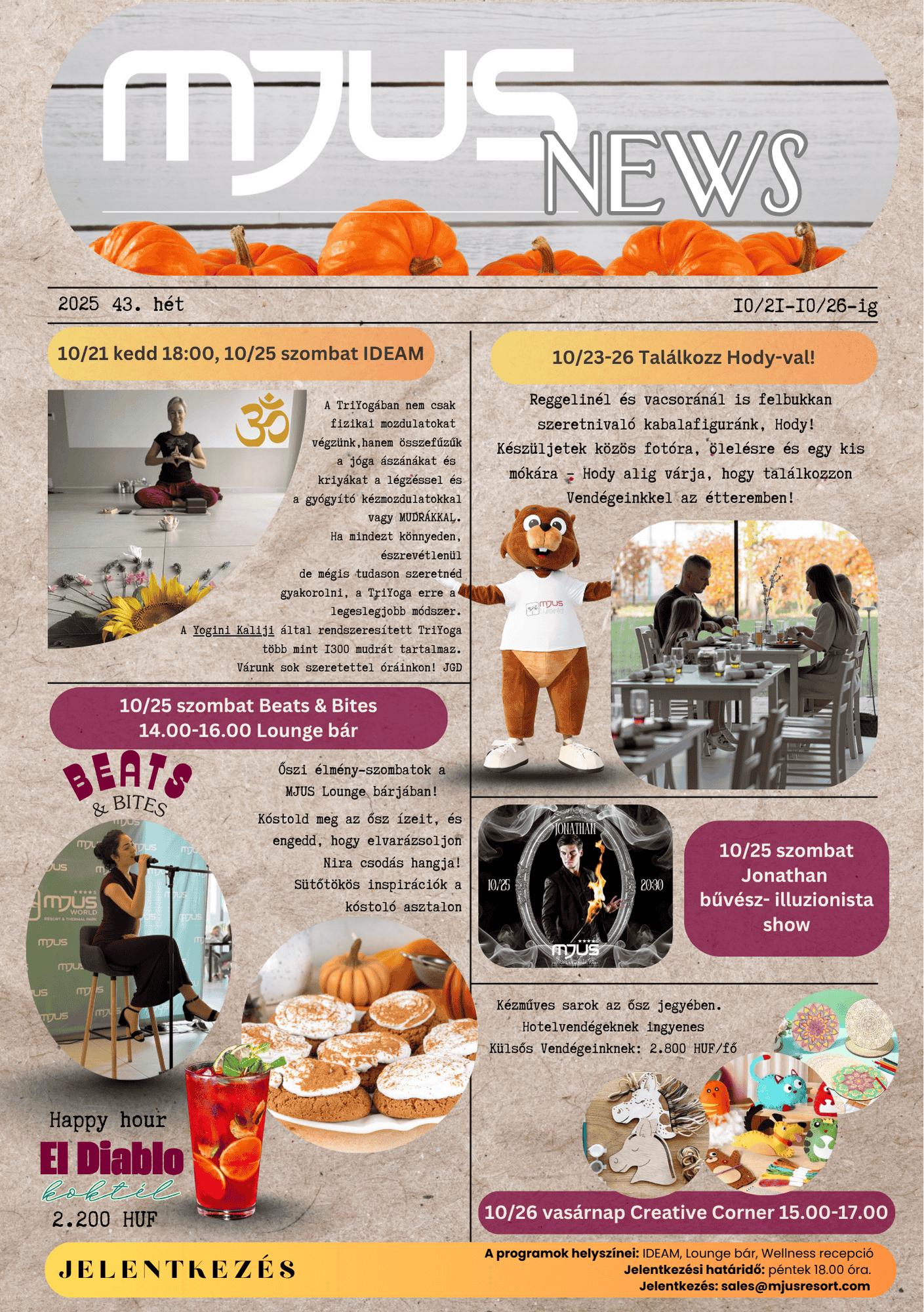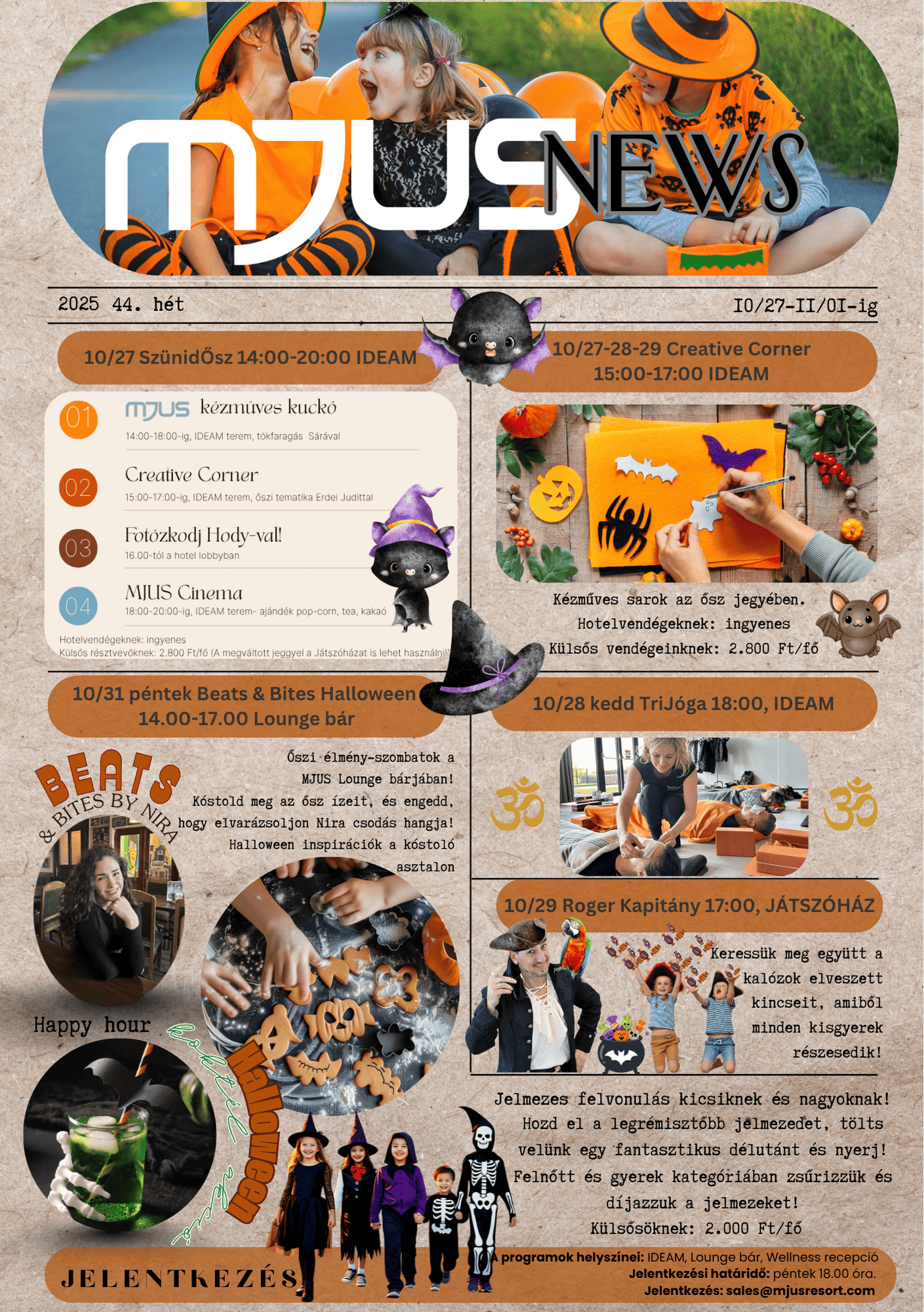 - 10.31: Beats&Bites:Halloween Harapnivalók a MJUS boszorkánykonyhájából Nira Casanas Solymosi énekesnő kíséretében 14.00-16.00
