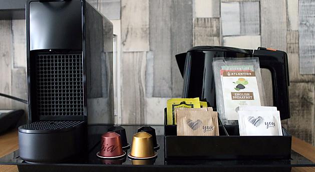 _ Szobai kapszulás kávéfőző, kávé- és teafogyasztási lehetőséggel;