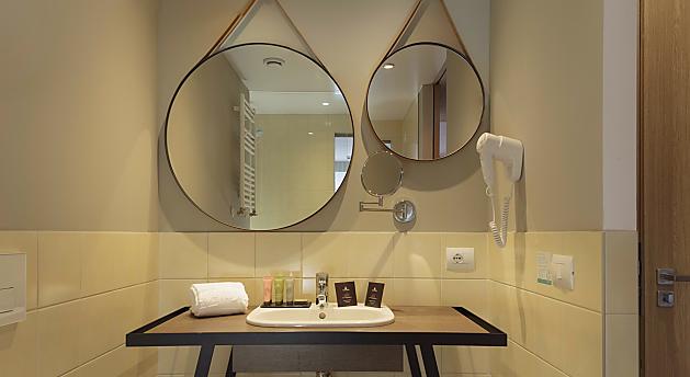 Inoltre, troverai il nostro comodo letto con materasso memory foam (180x210), angolo divano, tv lcd con canali satellitari, mini bar, tavolo da lavoro, internet Wi-Fi ad alta velocità, cassaforte, balcone. Bagno con doccia king size, phon, set asciugamani in puro cotone. A tua disposizione per tutta la durata del soggiorno la nostra comoda borsa Spa con un morbido accappatoio e ciabattine da camera. Tutte le nostre camere sono dotate di parquet anallergico.